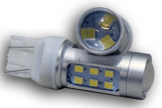 Deze T20 / W21W CAN-BUS LED set is geschikt voor vervanging van uw huidige rem- en achterlichten. T20 / W21W CAN-BUS LED’s bevatten 21 kleine power LED’s op elke lamp. De T20 / W21W CAN-BUS LED’s passen in de rem- en achterlicht fitting van uw auto. De 21 kleine LED’s zorgen ervoor dat het een prima vervanger is van uw huidige remlicht en achterlicht. De hoge lichtopbrengst maakt het een perfecte vervanger! Door de parabool lens aan de voorzijde zal er een mooi lichtbeeld optreden.